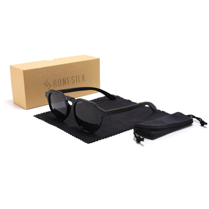 Sporting a round frame design, these sunglasses are both lightweight and cozy, featuring ebony wood arms and double spring hinges for added comfort. The smoke polarised lenses come with UV400 protection, ensuring your eyes stay shielded from the sun's damaging rays.